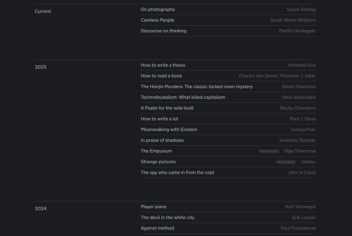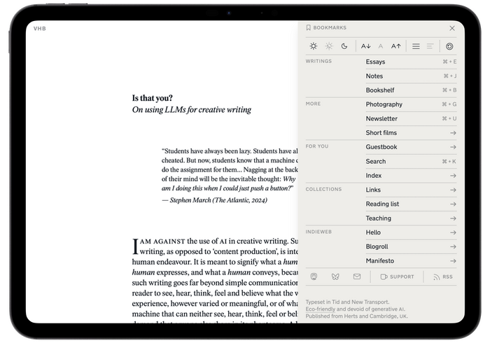 Updated since its previous iteration in 2023, the design of this text-heavy website remains centred primarily on its typography. This time it takes cues from book design, asking how the functional design elements that make up a book page might be translated into a webpage without simply mimicking a different format.