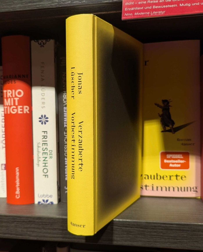 Verzauberte Vorbestimmung by Jonas Lüscher is a German novel published by Carl Hanser Verlag in Munich. The cover design has been created by Barbara Thoben of the Cologne-based studio Lübbeke Naumann Thoben. The novel was nominated for the German Book Prize 2025, and won the 2025 Wilhelm Raabe Literature Prize.