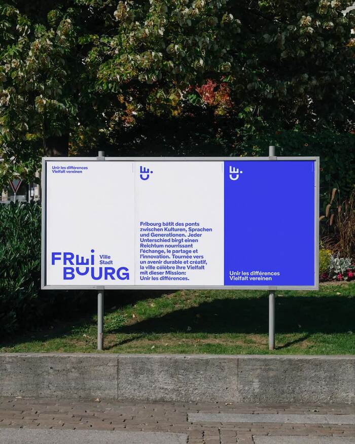 The City of Fribourg’s previous logo was twenty years old. It was time to adopt a new visual identity that symbolically reflected the specific characteristics of the cantonal capital. A competition was held to select the best design, which had to be bilingual in order to respect both the wishes of the municipal parliament and the history and current affairs of the city. The new corporate identity was designed by a joint venture of FF studio and Volontiers.