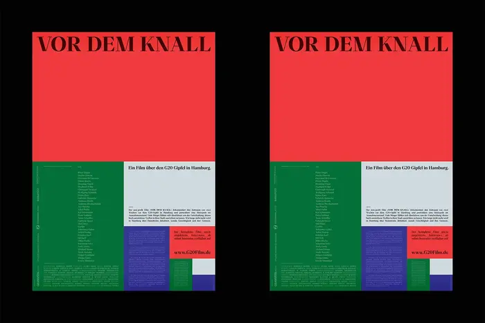 Para from Rellence was used for the visual identity of Vor dem Knall, a documentary about the 2017 G20 summit in Hamburg. The typeface gives the project a sharp and contemporary tone that fits the film’s focus on political tension and civic atmosphere.