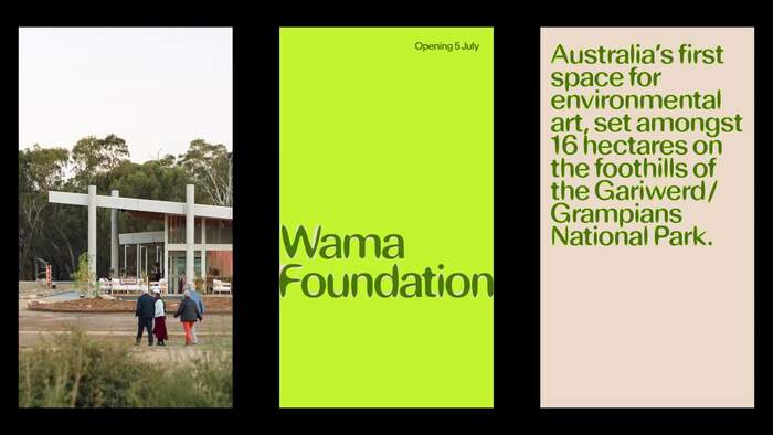 Wama Foundation is Australia’s first environmental art precinct, grounded in the Gariwerd/Grampians landscape at Halls Gap. A customised brand treatment was developed as a display face for branded elements and key titles. Utilising Antarctica as the framework for the customisation, and as the supporting copy. The solution draws from the region’s mountainous topography, weathered sandstone and new botanical growth, creating a grounded, textural visual language that reflects both Gariwerd/Grampians and broader Australian ecology. Delivering an identity that could flexibly and distinctively express the precinct's vision as a cultural destination connecting art, ecology and landscape.
