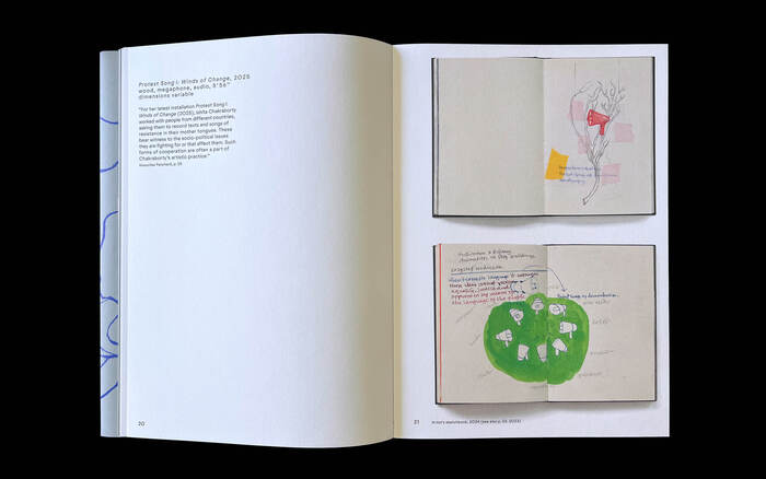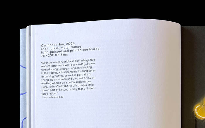 Whispers of the Unheard is Ishita Chakraborty’s first monograph. The work of the artist, who is based in Switzerland, is rooted in postcolonial discourse and deals intensively with topics such as ecology, migration, and sociocultural inequality. The 112-page publication comprehensively documents and illuminates her artistic practice, providing insights into her work over the past few years.