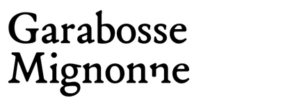 The typography uses Garabosse Mignon·ne and Perle, with initials from Cordier Script.