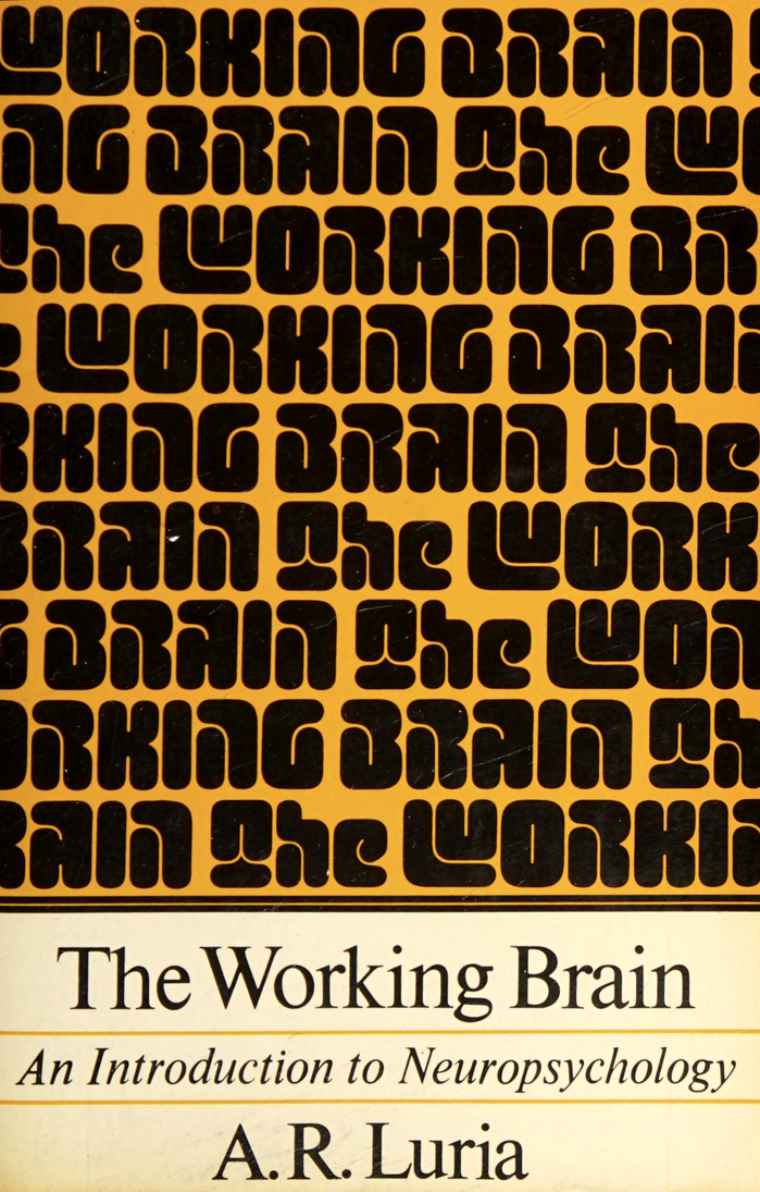 The Working Brain is an introduction to neuropsychology, written by Soviet psychologist A.R. Luria as a concise adjunct volume to his magnum opus, Higher Cortical Functions in Man from 1962. It was translated to the English by Basil Haigh for Penguin Books in 1973. Shown here is the cover of the US paperback edition by Basic Books.