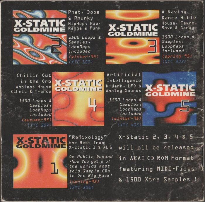 X-Static Goldmine is a series of CDs with samples and sounds to use in house/techno productions, by Erik Svahn of e-LAB (and now of Raw Cutz), Stockholm.