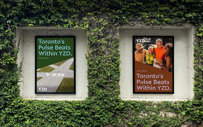 YZD is among the most ambitious urban development projects in North America: on the site of the former Downsview Airport (call sign: YZD) near Toronto, seven new neighborhoods for 60,000 residents are planned to be developed over a period of three decades. Pentagram was commissioned with the branding of this monumental project.