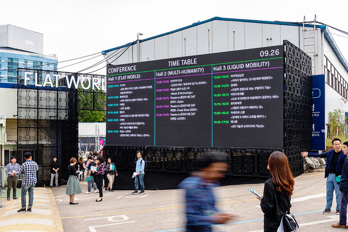 ZER01NE DAY 2019 presents the results of the past year as creative minds who create questions from people, society, and life concerns, start-ups that translate questions into real-life, and find answers through quick action, and connect and share various questions and answers with people-centered social values. We have developed a borderline fluid image that reflects the theme of ZER01NE DAY 2019 called “BORDERLESS in EVERYTHING,” and have worked hard to articulate the theme of the festival in preparation for an object symbolizing the engine