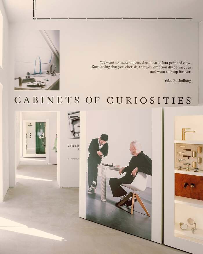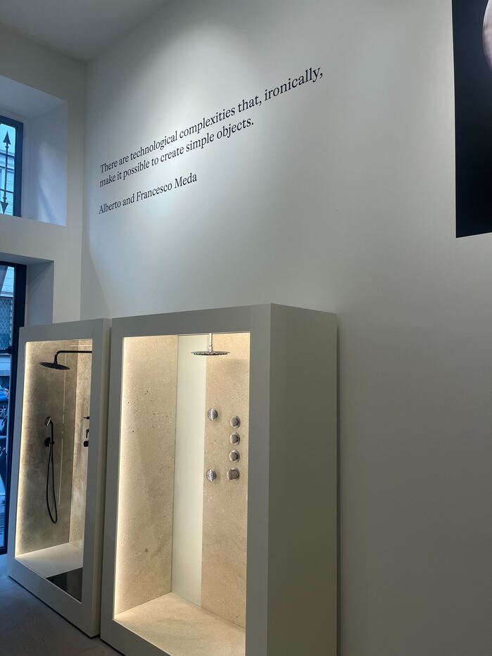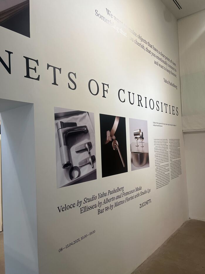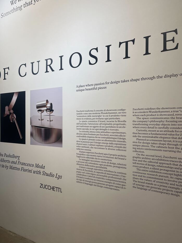 Zucchetti presents its latest innovations in the shower space, a brand-new tap collection titled Cabinets of Curiosities at Milan Design Week 2025. Text throughout the display is set in Romek.